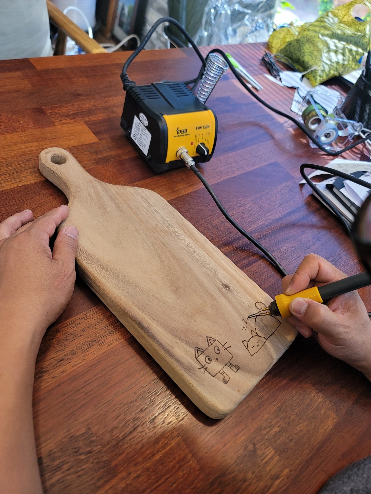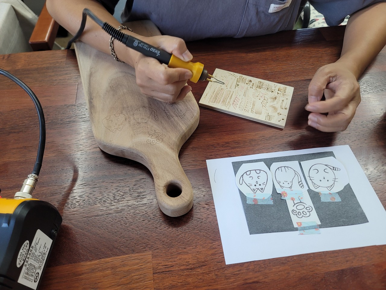 - 인두로 도마에 디자인 새기기