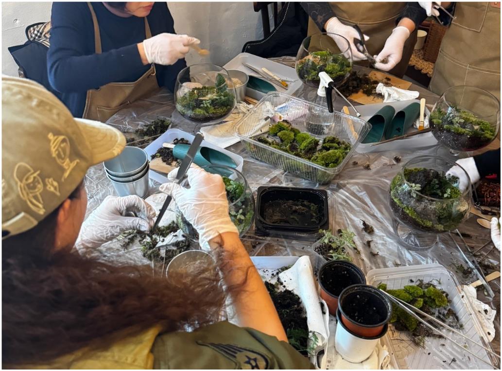 - 테라리움에서 가장 중요한 배수층부터 토양층 작업, 그 위에 돌을 배치하고, 이끼와 식물을 식재해 나만의 정원을 꾸며보는 시간입니다. 각자의 감성과 이야기를 담아, 하나뿐인 정원을 만들어가요. 손끝으로 흙을 만지고, 초록을 느끼며 마음도 차분해지는 순간이에요.