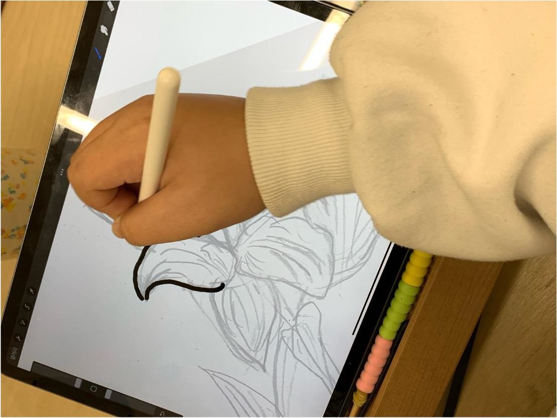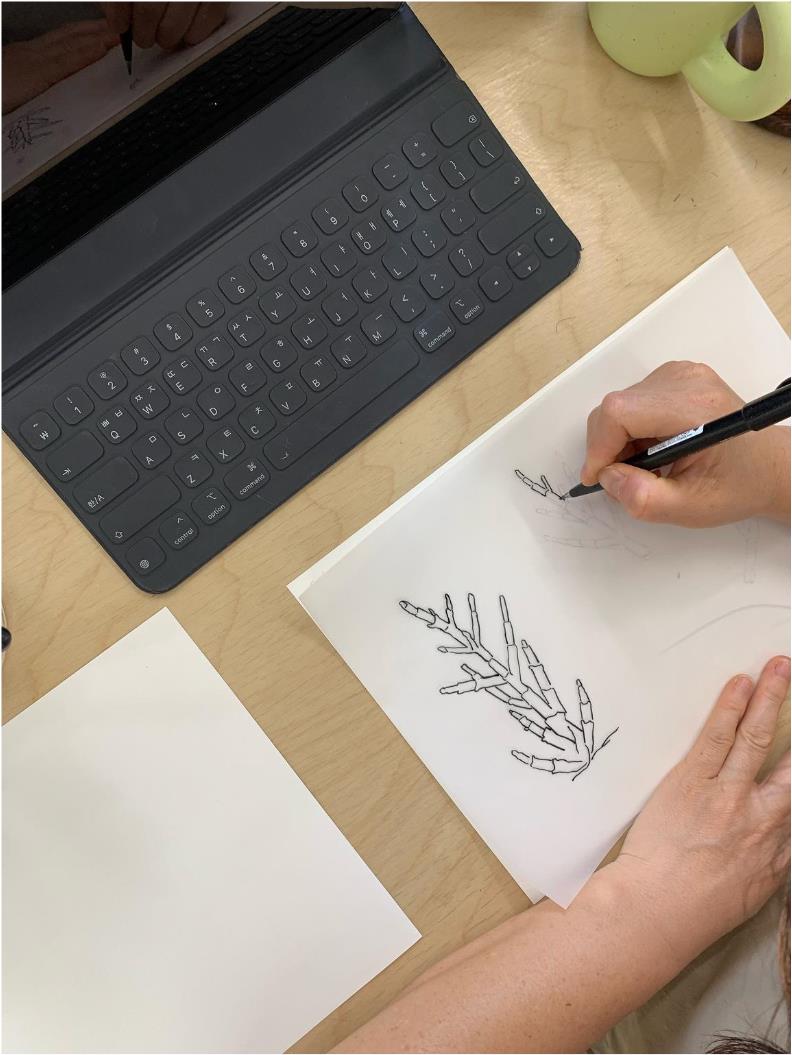 - 아이패드와 손그림을 이용한 그림 도안을 선생님의 도움으로 쉽게 준비합니다.