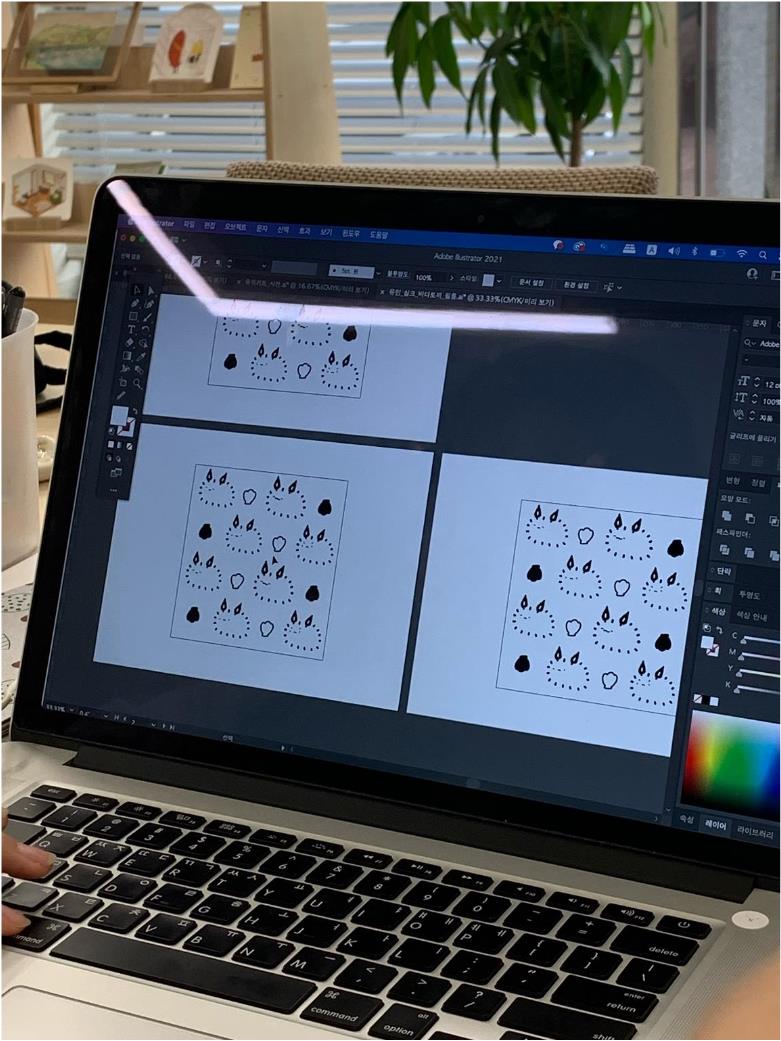 내가 그린 그림을 실크스크린에 최적화되도록 편집하고 인쇄합니다.