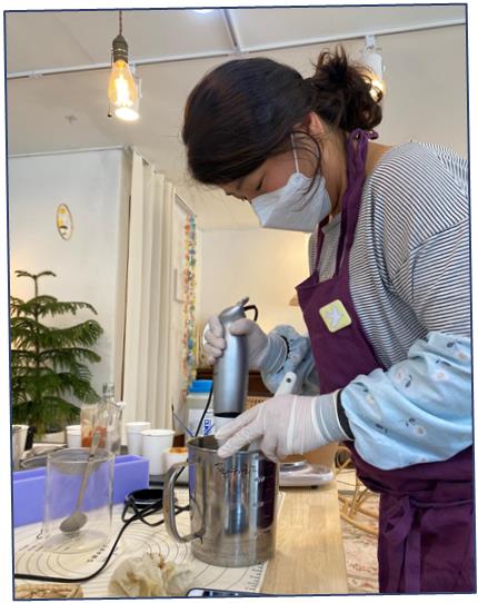 - 편백비누 만들기 : 추출된 편백수와 블랜딩한 아로마를 넣은 저온숙성기법의 비누만들기 체험(500G)