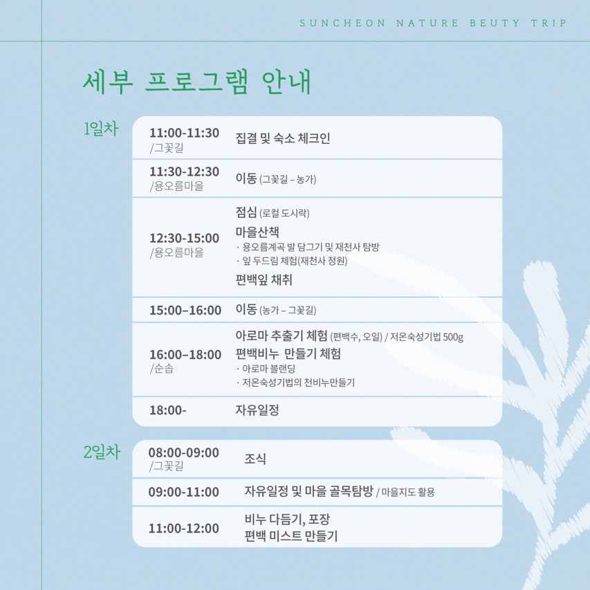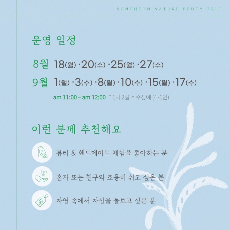 - 체험프로그램 명 : 순천 네이처 뷰티 트립