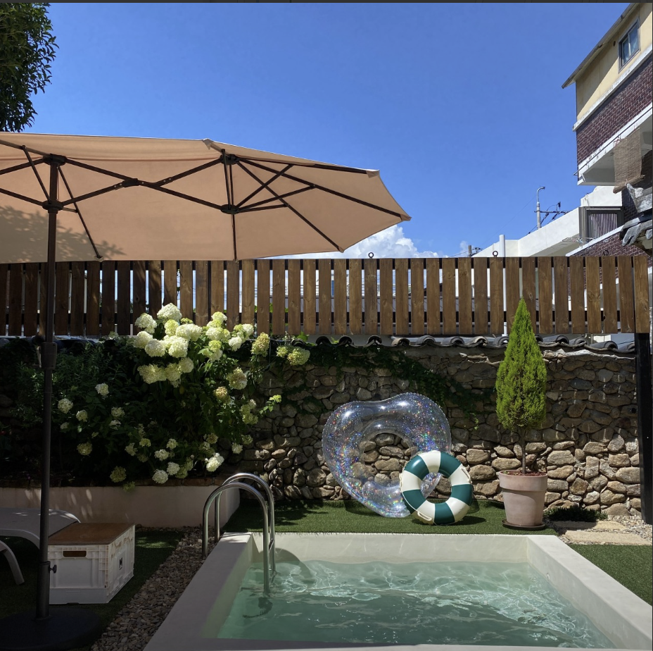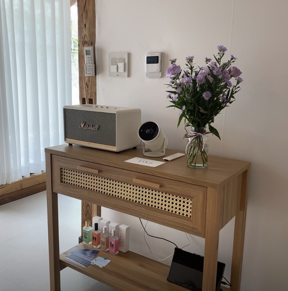 A : 저희 숙소에 TV가 없어요. 가족, 친구, 연인이 공간을 즐기고 다 같이 이야기할 공간으로 꾸미고 싶었거든요. 빔 프로젝터는 둬서 영화는 볼 수 있게 했어요. 족욕이 가능한 공간 옆에 바스솔트를 두고, 바비큐를 할 수 있는 공간을 숙소와 분리해서 준비해두는 하나하나가 저희의 가치를 만드는 것 같아요.