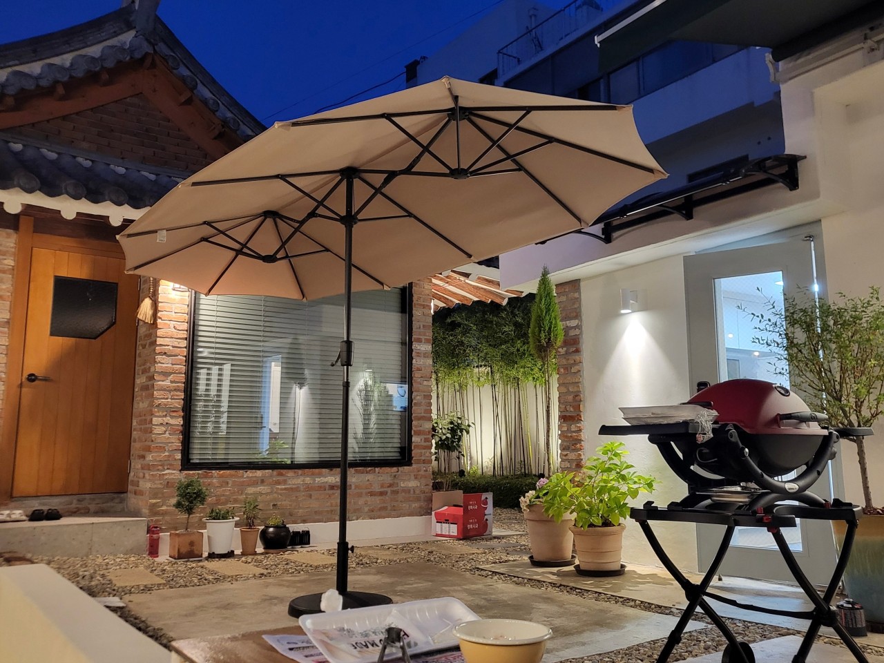 A: 저는 비 올 때의 나모온이 좋아요. 지금 인터뷰 하고 있는 주방에서 마당 조경이 다 보이는데요. 주방 안에 있는 소품이나 디자인도 다 서로 어울리게 꾸며둔 것이고요. 그래서 여기서 조식을 드시면서 바깥을 보면 비 오는 날이 아니어도 참 좋아요. 한옥이 가지는 운치를 숙소 내에서 극대화하려고 노력했거든요. 해가 지고 조명들이 켜지면 사진 찍고 가시는 분들도 많아요.