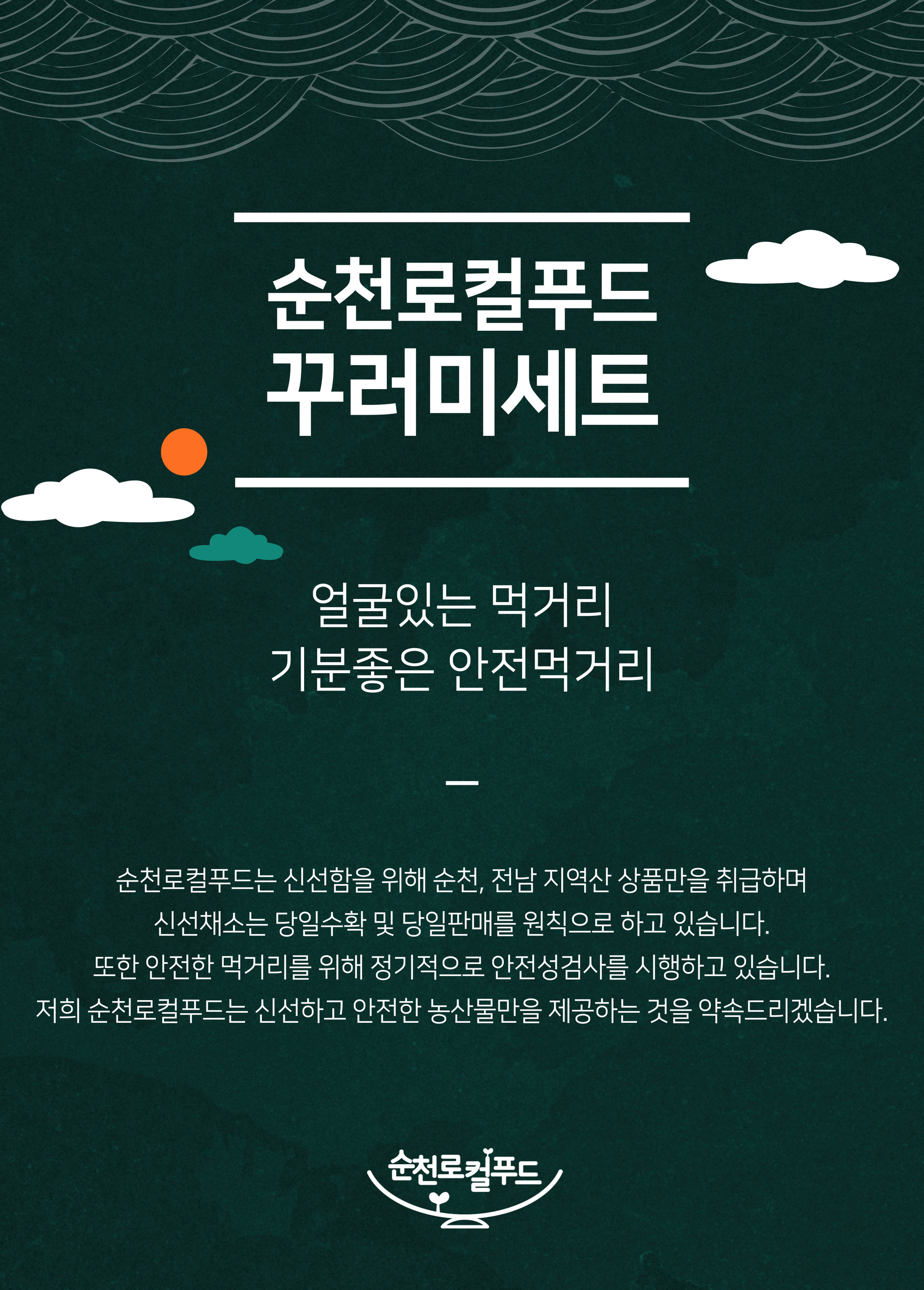 저희 순천로컬푸드는 신선하고 안전한 농산물만을 제공하는 것을 약속드리겠습니다.