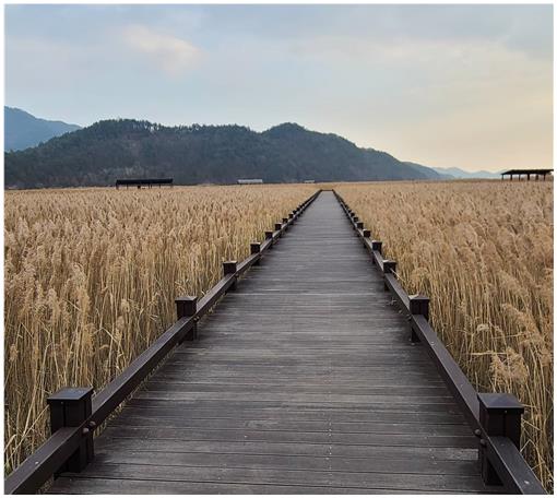 갈대숲 사이를 걸으며 고요한 소설 속 무진의 아침을 만끽해보세요.